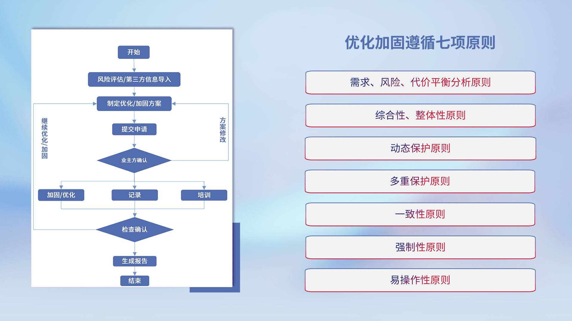 最大程度利用现有资产,,,对评估发现的问题进行封堵与整改,,,防止漏洞被利用,,提升整体网络安全性,,,为客户带来高标准的优化加固服务。。。